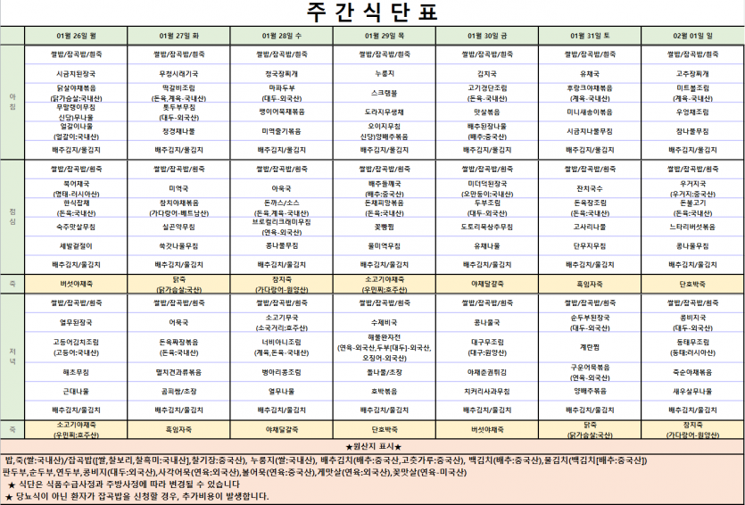 2026년 1월 셋째주 식단표