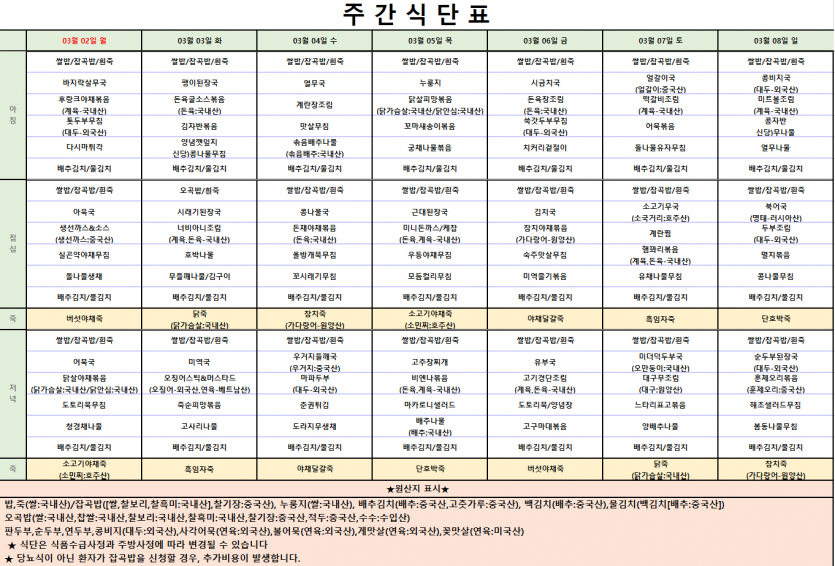 2026년 3월 첫째주 식단표