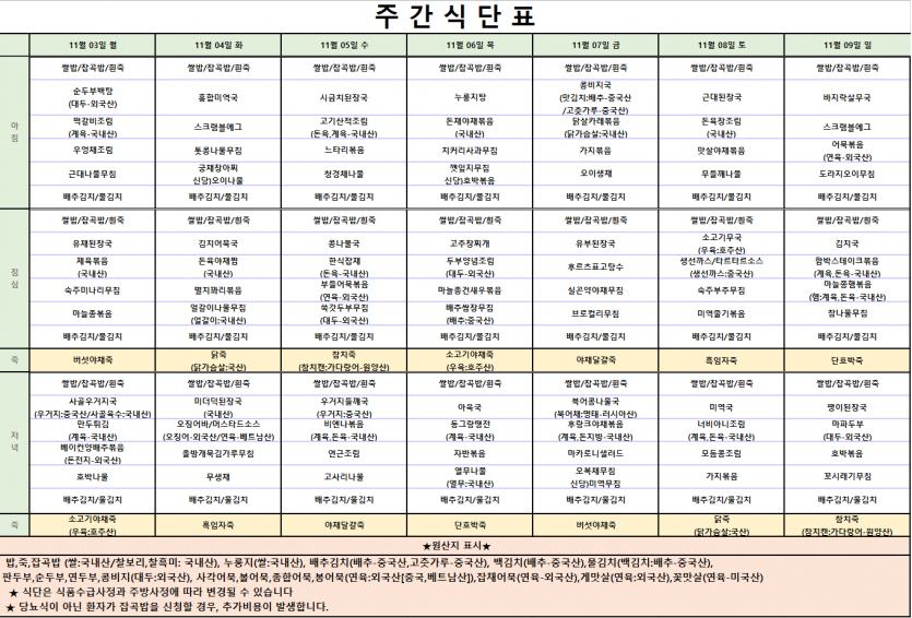 2025년 11월 첫째주 식단표 작성자 최고관리자 댓글 0건 조회 45회 작성일 25-11-01 16:12 . 목록 이전글2025년 11월 둘째주 식단표. 25.11.08 다음글2025년 10월 다섯번째주 식단표 25.10.25
